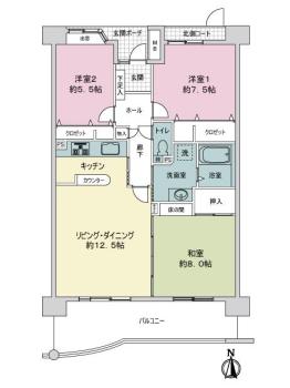 間取り 3LDK 専有面積 88.15m2(26.6坪) 壁芯