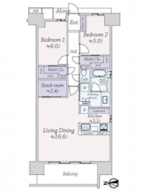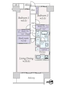 間取り 2LDK 専有面積 75.01m2(22.6坪) 壁芯