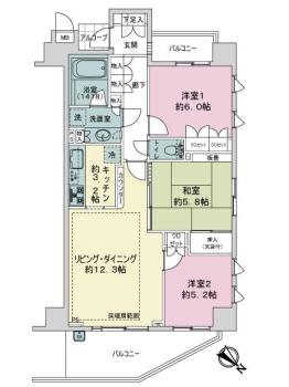 間取り 3LDK 専有面積 73.84m2(22.3坪) 壁芯