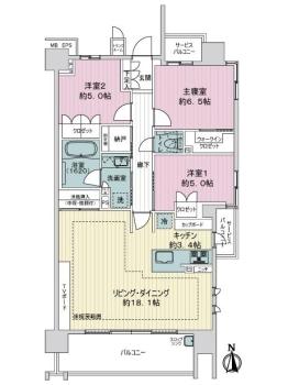 間取り 3LDK 専有面積 86.49m2(26.1坪) 壁芯