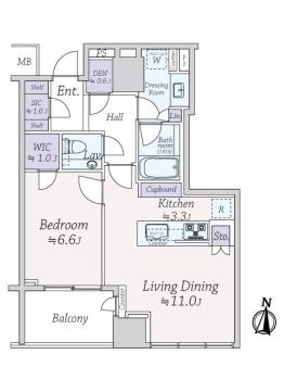 間取り 1LDK 専有面積 56.23m2(17.0坪) 壁芯