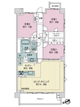 間取り 3LDK 専有面積 96.94m2(29.3坪) 壁芯