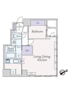 間取り 1LDK 専有面積 52.97m2(16.0坪) 壁芯