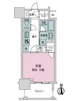 間取り 1K 専有面積 30.45m2(9.2坪) 壁芯