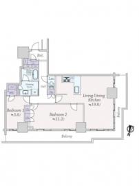 間取り 2LDK 専有面積 85.28m2(25.7坪) 壁芯