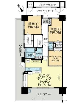 間取り 2SLDK 専有面積 79.35m2(24.0坪) 壁芯