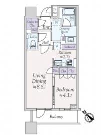 間取り 1LDK 専有面積 40.13m2(12.1坪) 壁芯