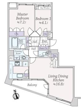 間取り 2LDK 専有面積 64.79m2(19.5坪) 壁芯