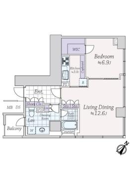間取り 1LDK 専有面積 60.55m2(18.3坪) 壁芯