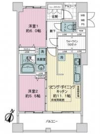 間取り 2LDK 専有面積 56.28m2(17.0坪) 壁芯