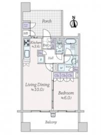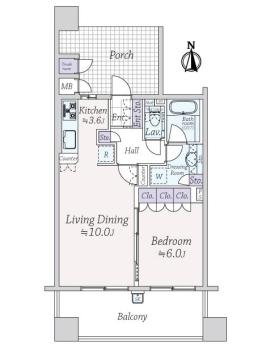 間取り 1LDK 専有面積 47.44m2(14.3坪) 壁芯