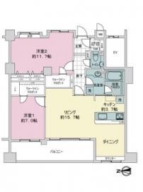間取り 2LDK 専有面積 90.08m2(27.2坪) 壁芯