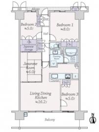 間取り 4LDK 専有面積 86.37m2(26.1坪) 壁芯