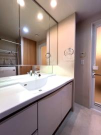 • 収納スペースが多い三面鏡洗面化粧台です。鏡の裏に小物類を収納できます。