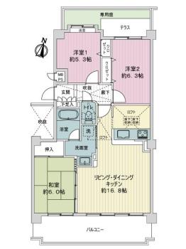 間取り 3LDK 専有面積 72.36m2(21.8坪) 壁芯