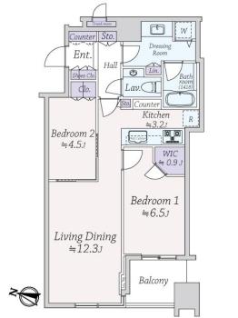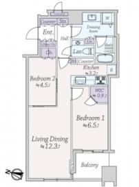 間取り 2LDK 専有面積 62.85m2(19.0坪) 壁芯