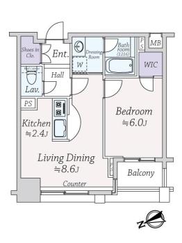 間取り 1LDK 専有面積 41.20m2(12.4坪) 壁芯