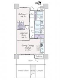 間取り 2LDK 専有面積 61.43m2(18.5坪) 壁芯