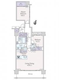 間取り 2LDK 専有面積 95.34m2(28.8坪) 壁芯