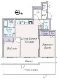 間取り 2LDK 専有面積 56.54m2(17.1坪) 壁芯