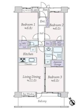 間取り 3LDK 専有面積 72.41m2(21.9坪) 壁芯