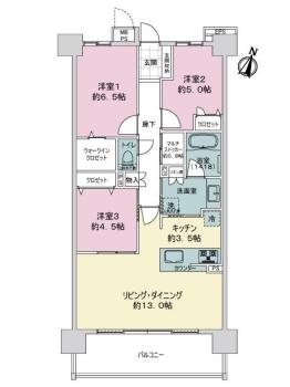 間取り 3LDK 専有面積 75.28m2(22.7坪) 壁芯