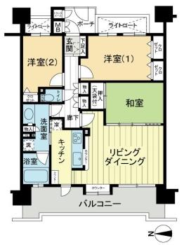 間取り 3LDK 専有面積 75.60m2(22.8坪) 壁芯