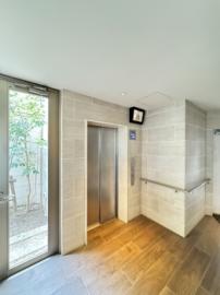 • エレベーターホール。エレベーター内の様子を外部から確認できる防犯カメラ付き