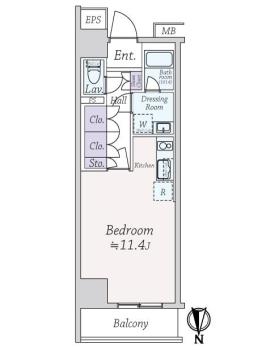 間取り 1K 専有面積 32.49m2(9.8坪) 壁芯