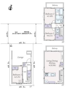 土地面積 50.09m2(15.1坪) 登記簿 別途私道負担214.64m2 建物延面積 78.91m2