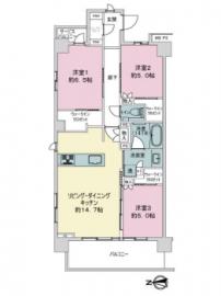 間取り 3LDK 専有面積 75.30m2(22.7坪) 壁芯