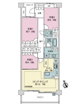 間取り 3LDK 専有面積 80.55m2(24.3坪) 壁芯