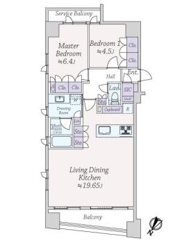 間取り 2LDK 専有面積 70.07m2(21.1坪) 壁芯