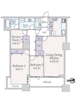 間取り 2SLDK 専有面積 83.98m2(25.4坪) 壁芯