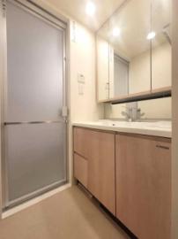• 洗面室 3面鏡・収納付広々としたカウンターの洗面台