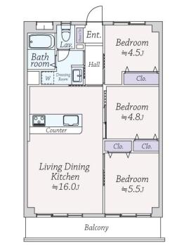 間取り 3LDK 専有面積 63.21m2(19.1坪) 壁芯