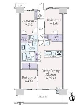 間取り 3LDK 専有面積 70.20m2(21.2坪) 壁芯