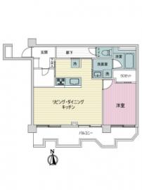 間取り 1LDK 専有面積 51.66m2(15.6坪) 壁芯