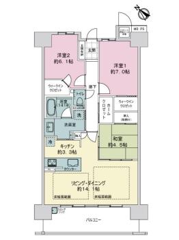 間取り 3LDK 専有面積 81.86m2(24.7坪) 壁芯