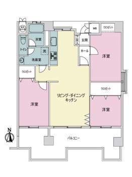 間取り 3LDK 専有面積 66.77m2(20.1坪)