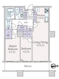間取り 2LDK 専有面積 68.27m2(20.6坪) 壁芯