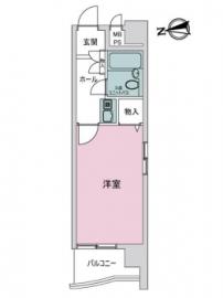 間取り 1K 専有面積 22.41m2(6.7坪) 壁芯