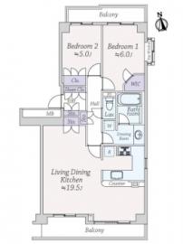 間取り 2LDK 専有面積 68.46m2(20.7坪) 壁芯