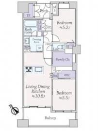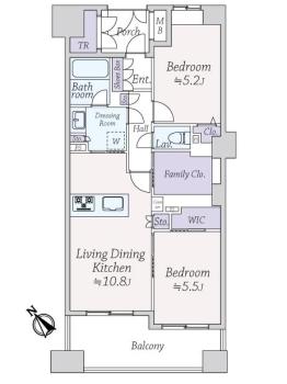 間取り 2LDK 専有面積 56.07m2(16.9坪) 壁芯