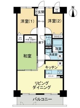 間取り 3LDK 専有面積 66.00m2(19.9坪) 壁芯