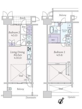 間取り 2LDK 専有面積 79.20m2(23.9坪) 壁芯