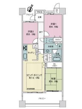 間取り 3LDK 専有面積 75.46m2(22.8坪) 壁芯