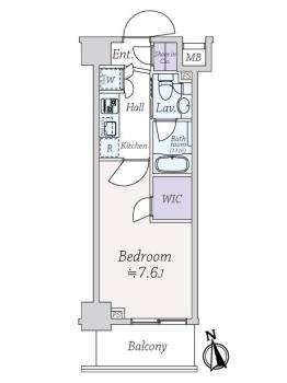 間取り 1K 専有面積 25.68m2(7.7坪) 壁芯