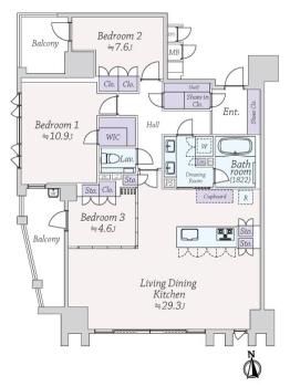 間取り 3LDK 専有面積 120.71m2(36.5坪) 壁芯