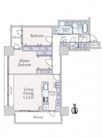間取り 2LDK 専有面積 74.09m2(22.4坪) 壁芯